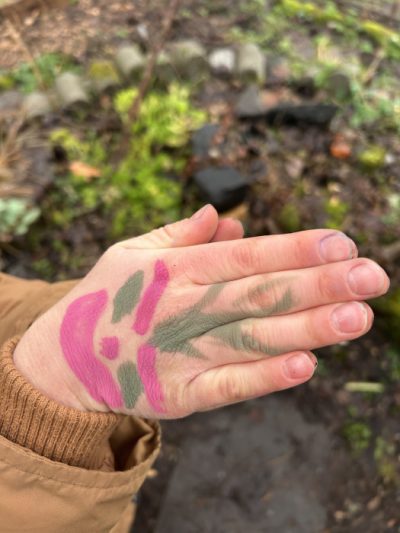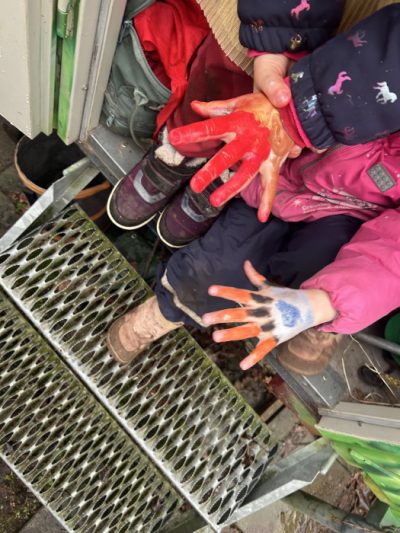Die Temperaturen werden stetig wärmer – daher räumen wir den Müll der Karneval und auch sonst leider rund um unseren Garten liegt, auf. Wow. Da kommt ordentlich was zusammen. So sieht es nicht nur schöner aus, auch Tiere können den Müll so nicht mehr fressen. Dann wird noch fleissig versteckt, gesucht und gemalt.