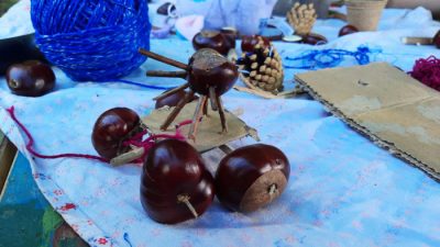 Ansonsten wird bei uns im Moment sehr fleißig gemalt und gebastelt. Am liebsten auf eigene Faust, ganz ohne Vorgaben der Erwachsenen. So entstehen zum Beispiel tolle Kastanienautos für Igel!