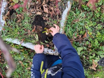 Und wenn wir gerade nichts Futtern, vertreiben wir uns die Zeit mit Spielen, Vorarbeiten für die kommende Gartensaison und pflanzen noch schnell ein paar Frühblüher.