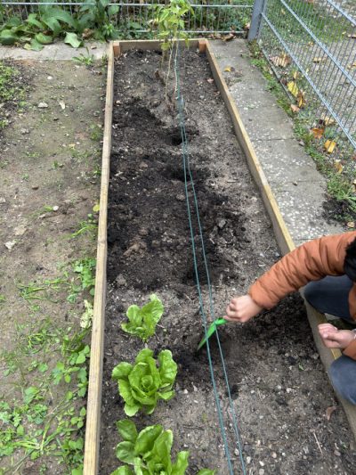 Aufgrund der guten Lage des Gartens mit viel Publikumsverkehr, hat es sich schnell herumgesprochen, dass in dem Viertel ein „Garten für Alle“ entsteht. Es fanden Gespräche über den Gartenzaun statt und tatkräftige Unterstützung leisteten Can und Mika (jeweils 15 Jahre alt) sowie Mohamed (7) und Junis (6) mit ihrem Vater Ibrahim.
