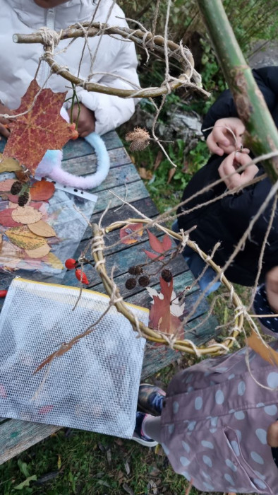 Schöne gemeinsame herbstliche Tage erleben wir im Gartenclub Akzienweg. Nach dem Rückschnitt einer Weide haben wir viel Material zum basteln und schnitzen. Wir binden Kränze aus den Weidenruten und basteln Mobiles aus bunten Blättern, Hagebutten und weiteren Naturmaterialien.
