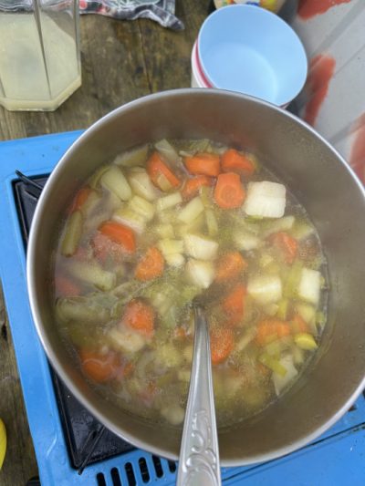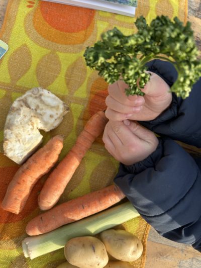 Bei wunderbarem Sonnenschein schnippelten wir Gemüse für ein leckeres Gartensüppchen. Dabei überlegten wir was das nochmal alles ist und warum wir es im Winter überhaupt haben.