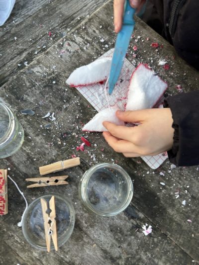 Bei sonnigem Winterwetter haben wir Kerzenresten und alten Gläsern zu einem neuen Auftritt verholfen. Dazu wurden sie zunächst zerkleinert und in einer alten Dose gesammelt.