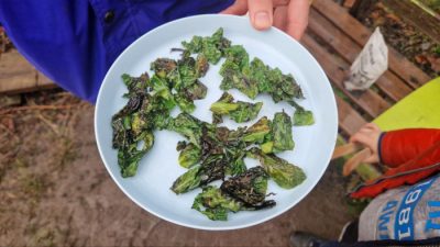 Auch in unseren Beeten gibt es noch etwas zu entdecken. Wir ernten Wirsing und zaubern leckere Wirsingchips auf unserem Hobo-Ofen. Zum Nachtisch gibts Marshmallows.
